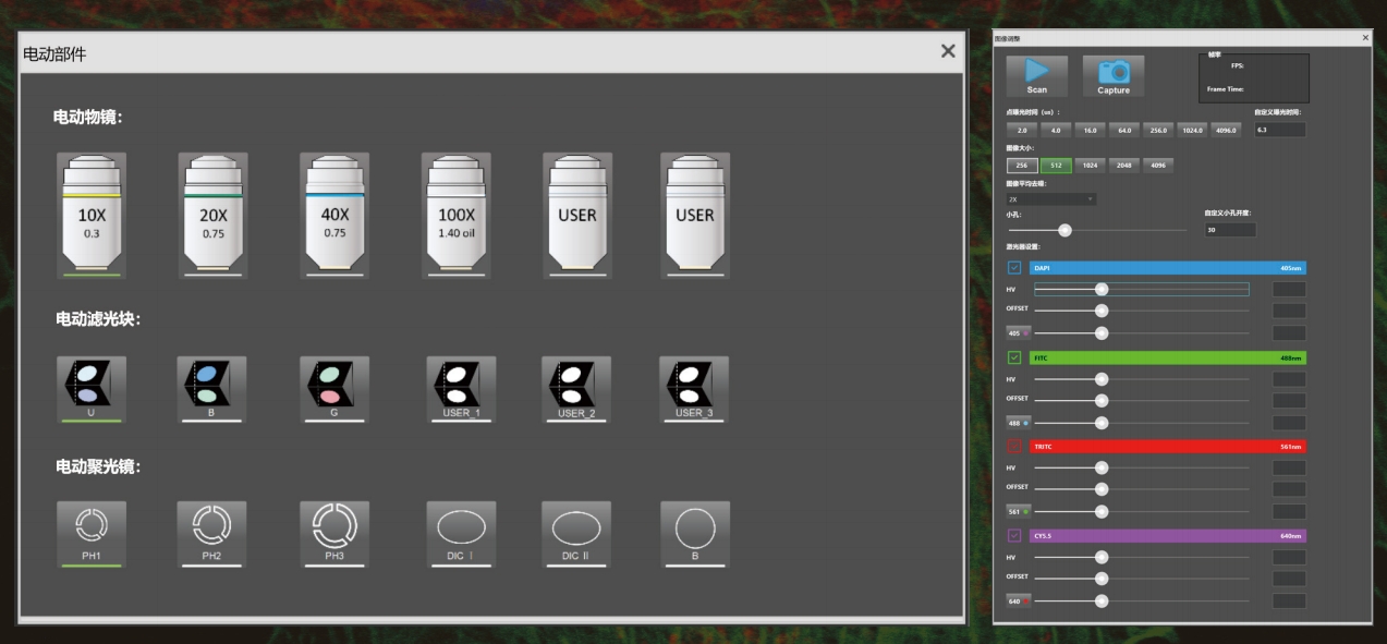 NOMIS Advanced C could perform integrated control for microscopes, cameras, motorized accessories etc. and realize automatic control and image analysis processing. The interface is intuitive and easy to understand, which is convenient for parameter setting and reset.