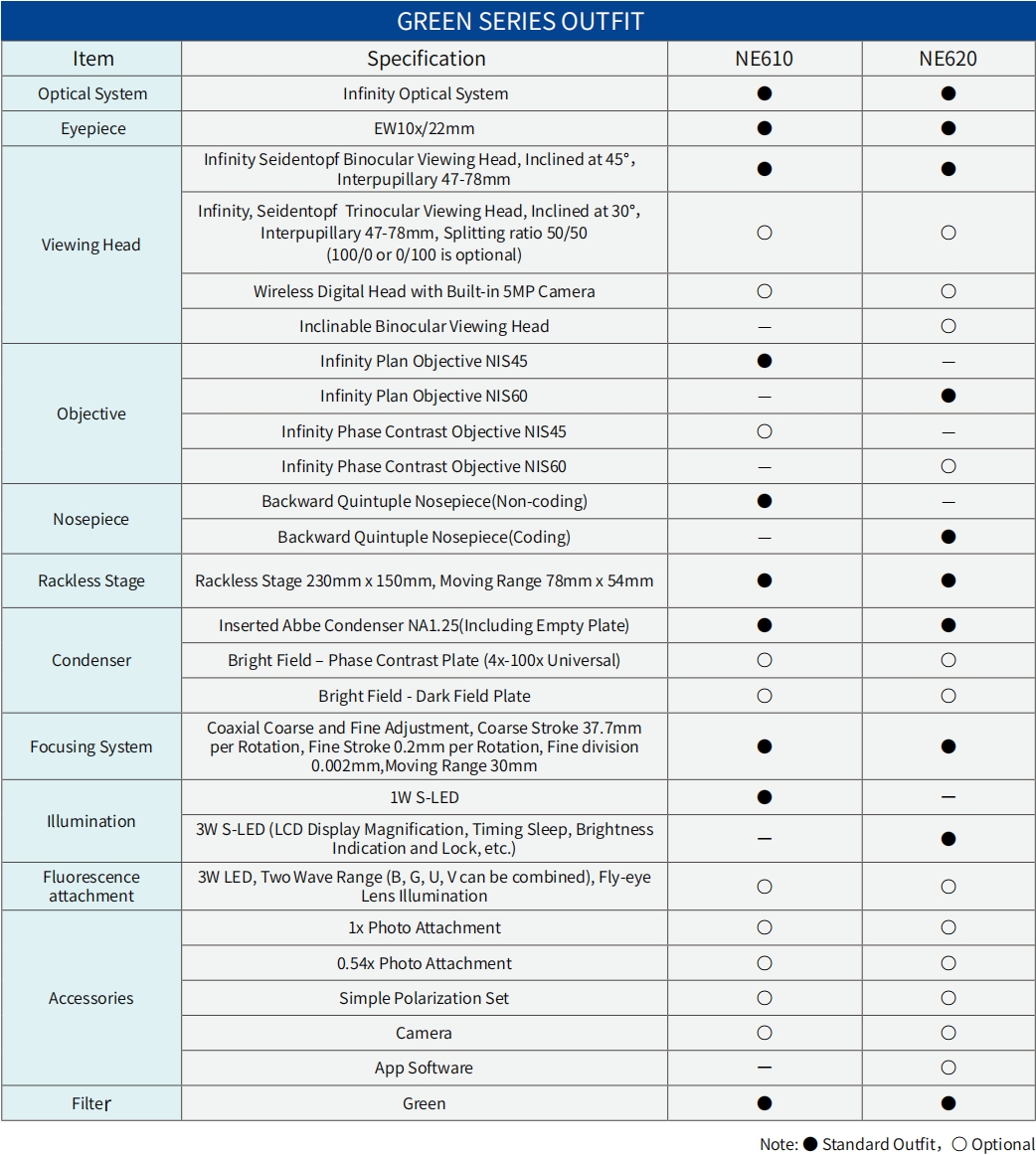NE600 series microscopes are specially designed for all kinds of microscopic observation needs such as biology laboratory and microscope teaching. With excellent optical quality, large field of view, excellent objective lens performance, clear and reliable imaging.
