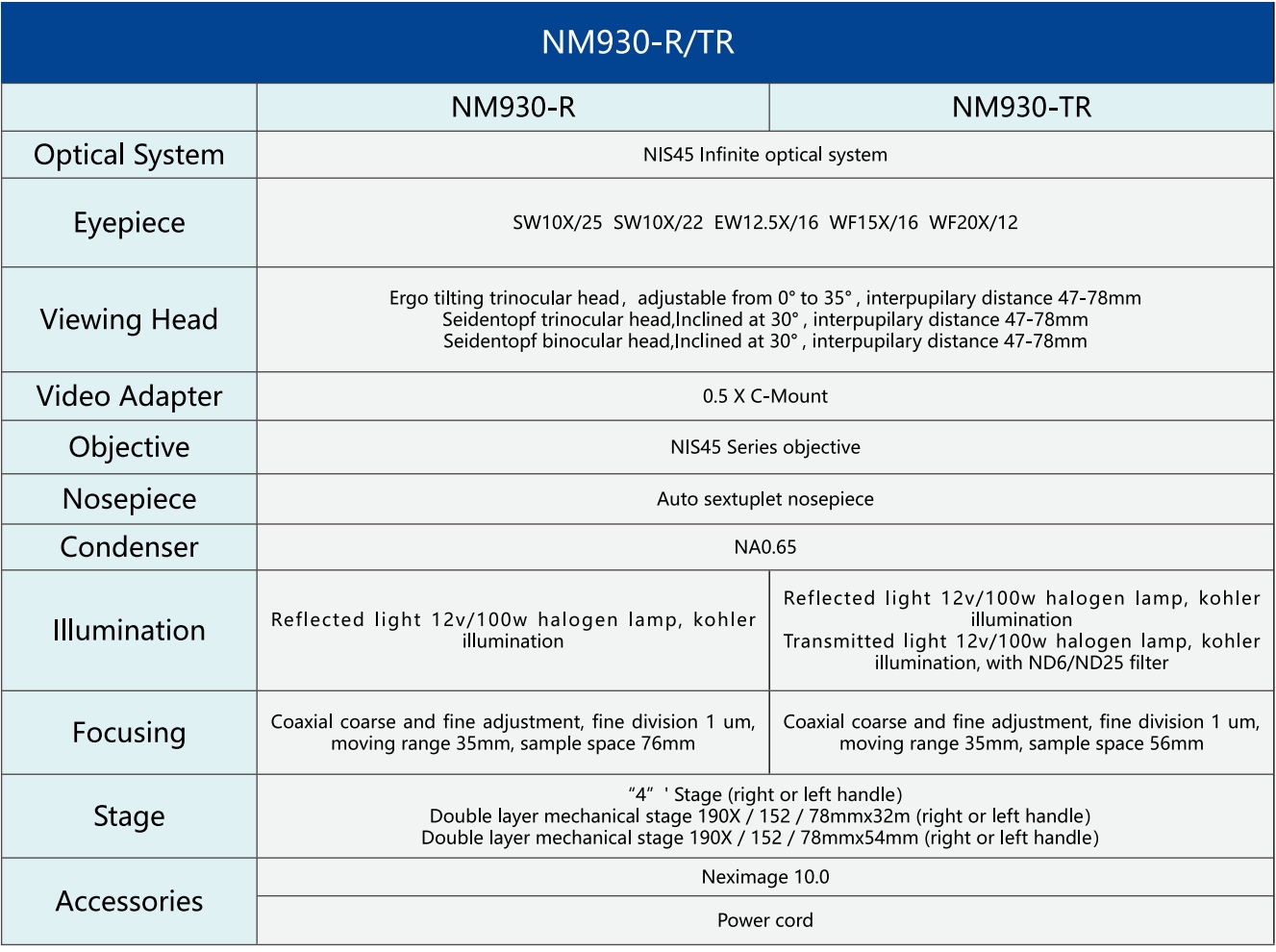 NM910 Upright Metallurgical Microscope