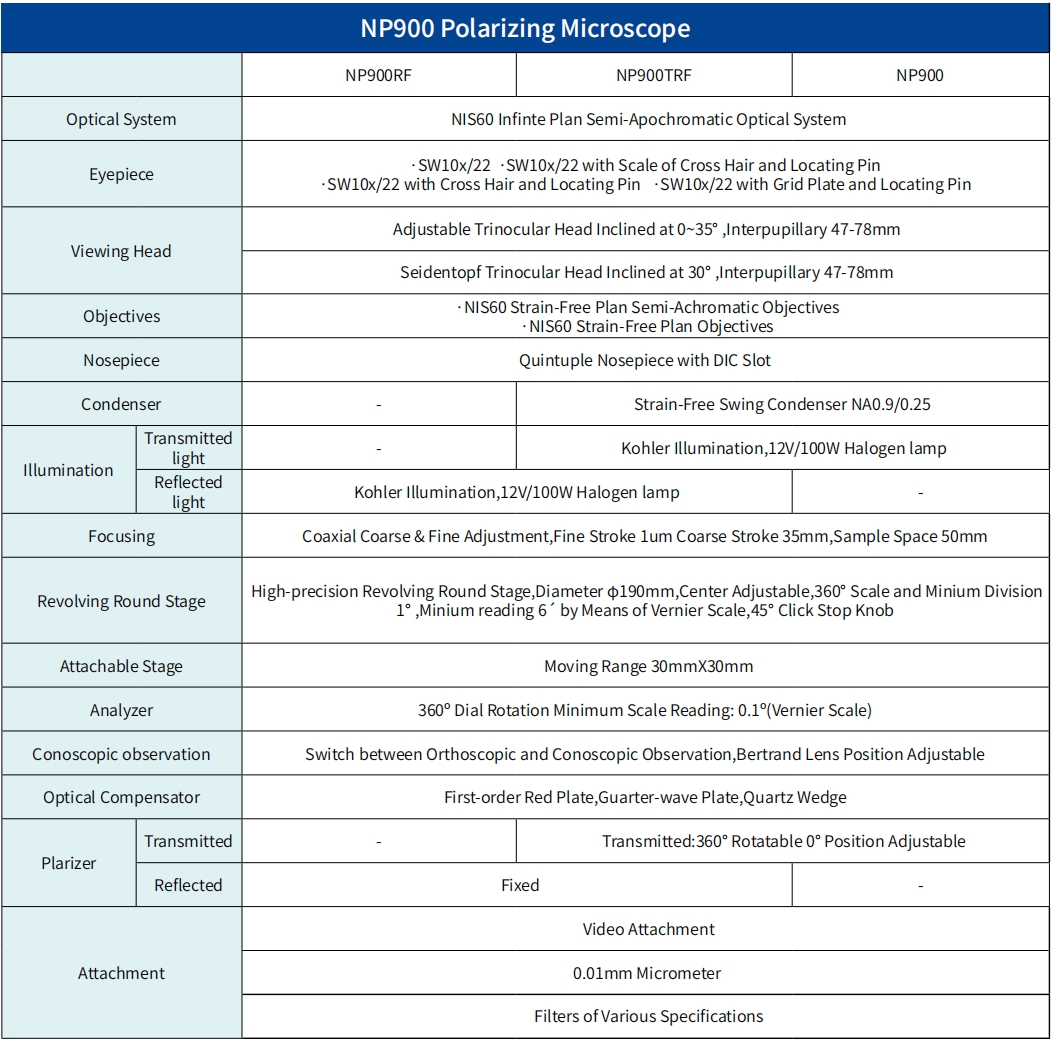 Polarizing microscope NP900 is powerful and comfortable. It is your reliable partner in scientific research and industrial inspection. It can realize many kinds of observation and provide excellent optical imaging quality.