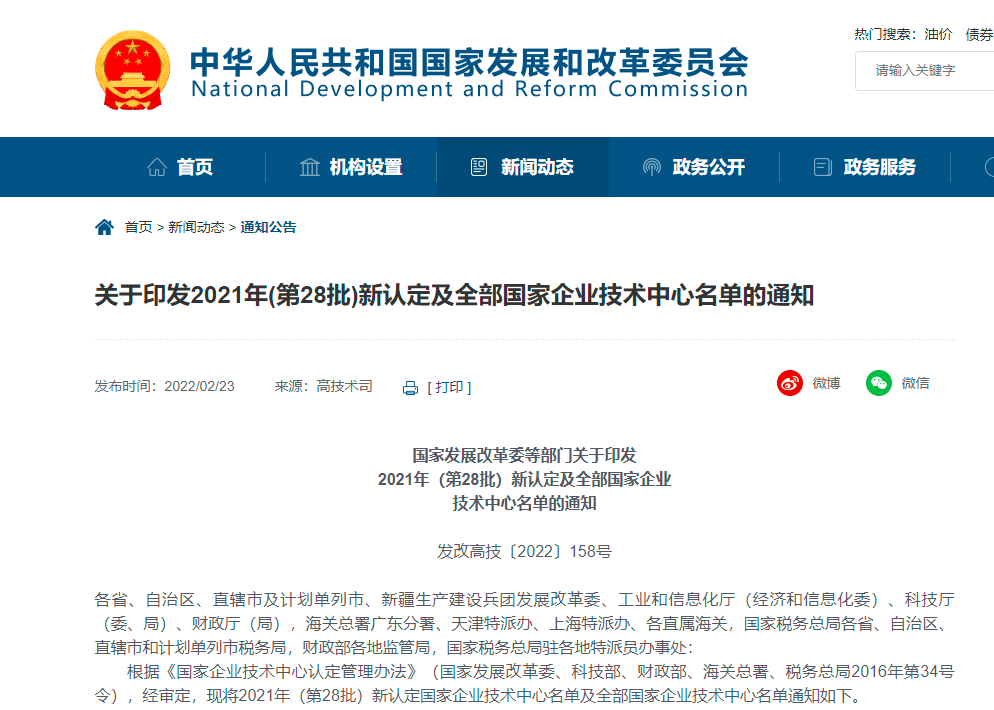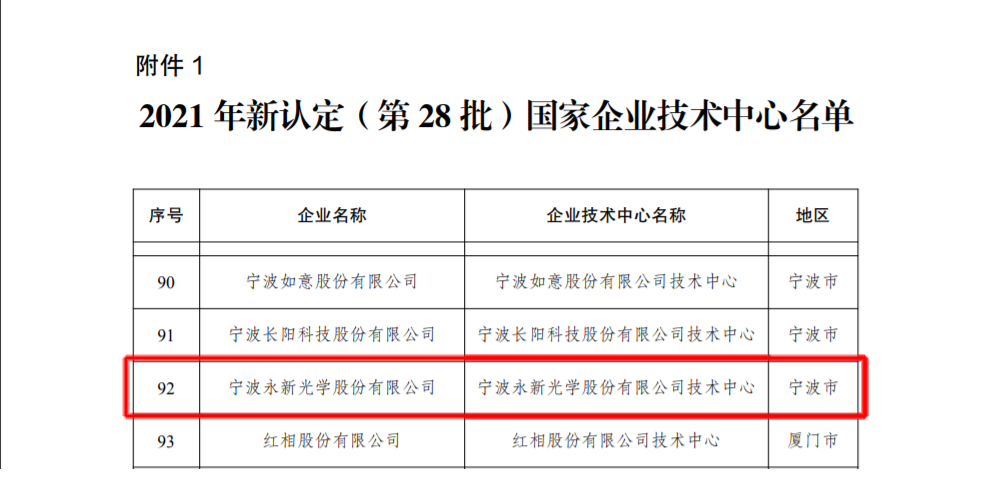近日,国家发展和改革委员会等部门发布《关于印发2021年(第28批)新认定及全部国家企业技术中心名单的通知》,正式公布2021年(第28批)新认定国家企业技术中心名单,永新光学成功入选。这是公司获得的又一项国家级荣誉,永新光学科研创新能力再获国家认可!
