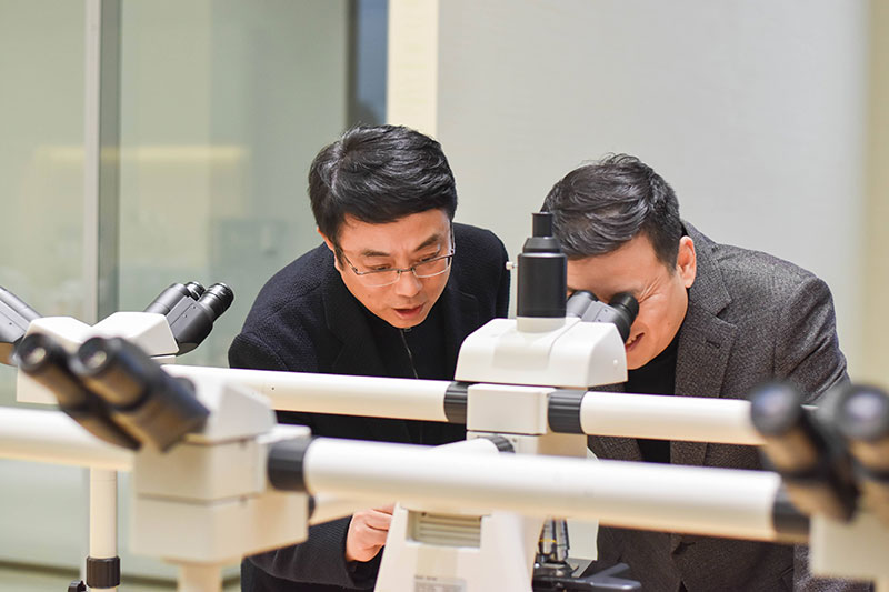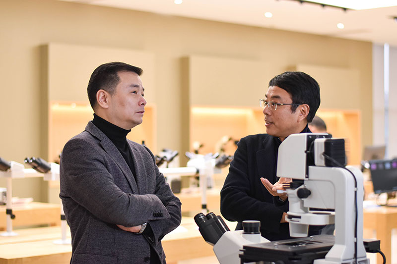 随后,在产品陈列区域,汤市长观摩了公司十三五重大专项成果——共聚焦显微镜,也亲自体验了新一代的智能显微镜产品。